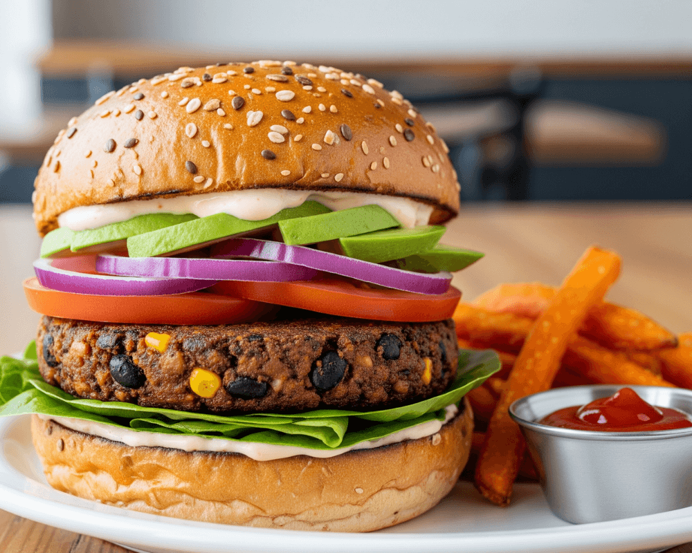 Wholesome plant-based burgers made with CEREN Black Beans, oats, and spices.