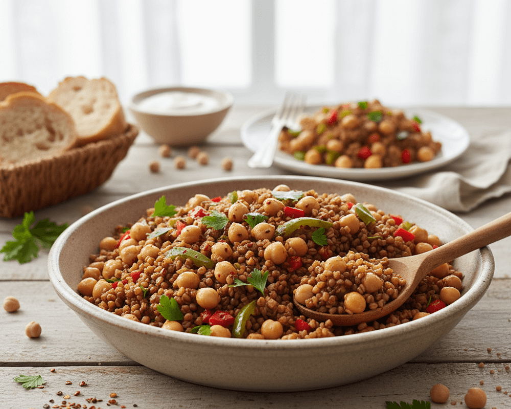 Brown Bulgur Pilaf with Chickpeas