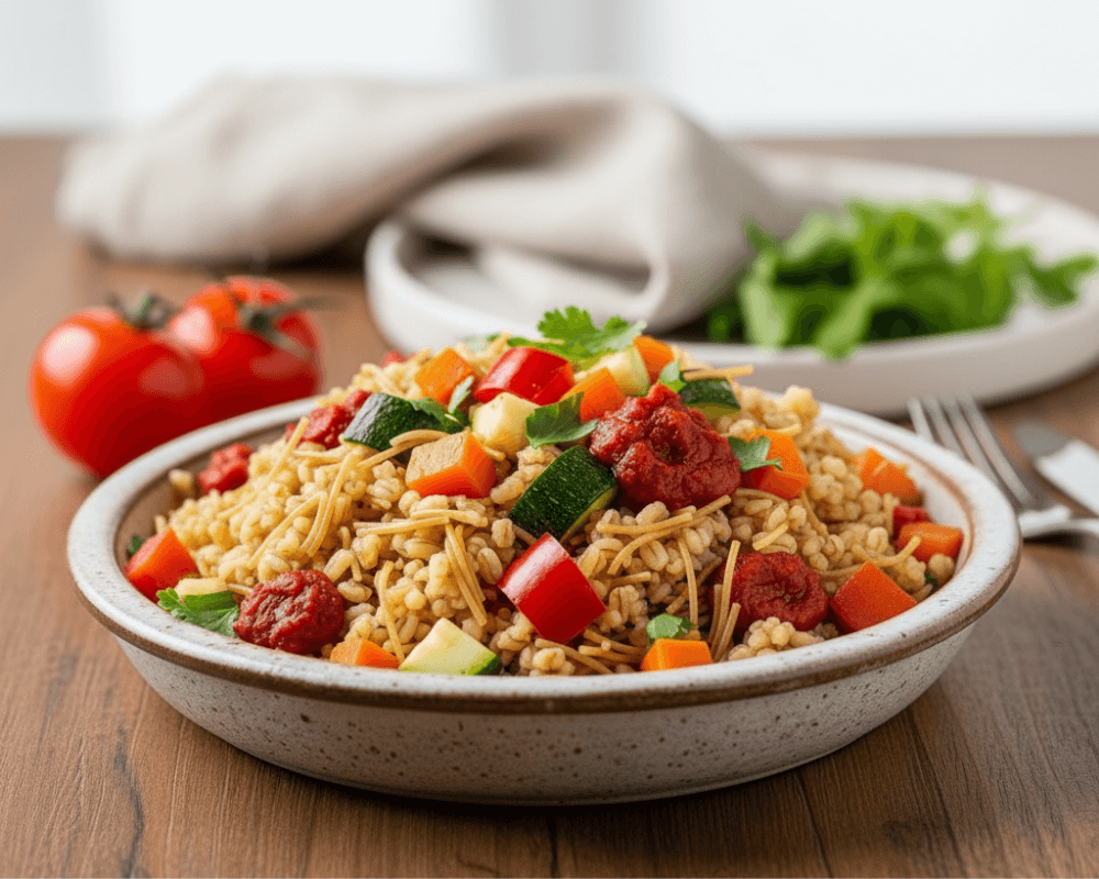 Bulgur with Vermicelli and Sautéed Vegetables