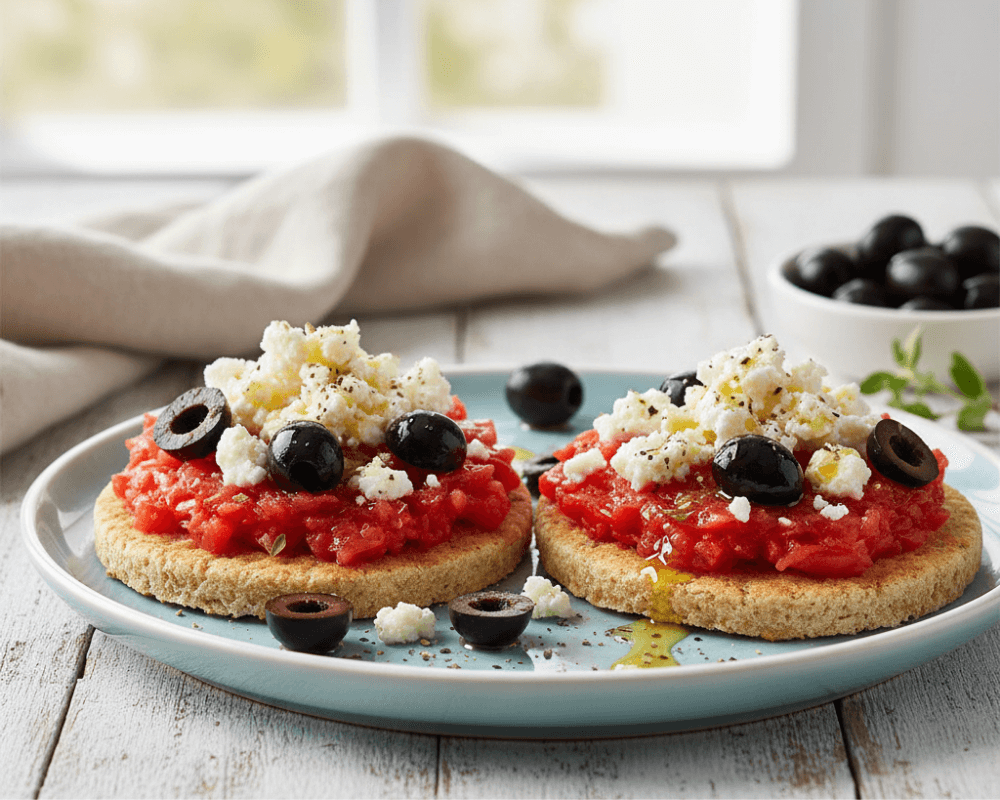 Greek Dakos Salad with Black Olives & Feta