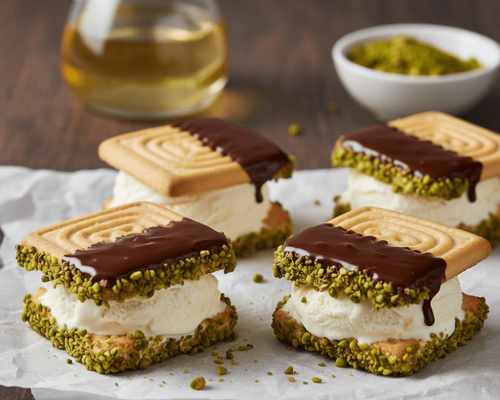 A refreshing summer dessert made with CEREN Halva Sandwich Biscuits and vanilla ice cream.