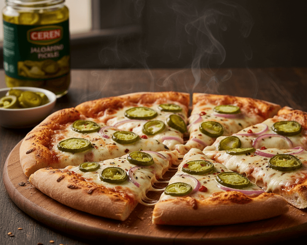A modern twist where CEREN Jalapeño Pickles add a spicy tang to cheesy pizza.
