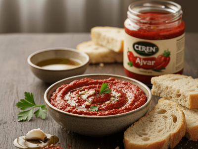 A traditional way to enjoy CEREN Ajvar — simply prepared but full of flavor. Ingredients 1 cup CEREN Ajvar 2 tablespoons olive oil 1 clove garlic, minced ½ teaspoon chili flakes (optional, for heat) Fresh parsley, chopped Instructions Prepare spread: In a bowl, mix CEREN Ajvar, olive oil, and minced garlic. Season: Add chili...