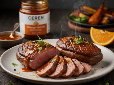 A gourmet-style dish where the sweet citrus of orange balances the spice of harissa. Ingredients 2 duck breasts, skin on 2 tablespoons CEREN Orange Harissa 1 tablespoon honey 1 tablespoon soy sauce 1 teaspoon grated fresh ginger Juice of ½ an orange Salt and pepper, to taste Instructions Prepare duck: Score the skin...