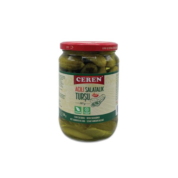 An essential for meals, sandwiches, and snacks, Ceren Acılı Salatalık Turşusu (Spicy Pickled Cucumbers) is made by carefully selecting the freshest and most tender cucumbers and blending them with special hot peppers. With every bite, you’ll experience that familiar crunch and refreshing tang.