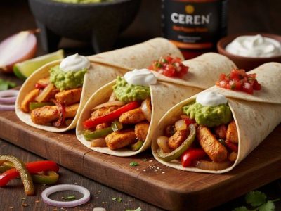 Ingredients 4 CEREN Tortillas 500 g chicken breast, sliced into strips 1 red bell pepper, sliced 1 green bell pepper, sliced 1 onion, sliced 3 tablespoons olive oil 2 tablespoons CEREN Hot Pepper Paste 1 teaspoon cumin 1 teaspoon smoked paprika Salt & pepper, to taste Sour cream, guacamole, or...