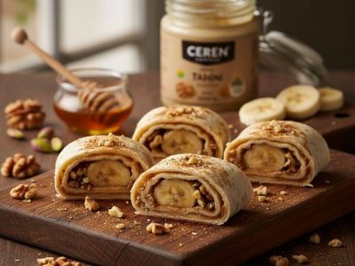 Ingredients 2 CEREN Tortillas 2 tablespoons CEREN Tahini 1 tablespoon honey (or date syrup) 1 banana, sliced 1 tablespoon chopped walnuts or pistachios Pinch of cinnamon Instructions Prepare filling: Spread CEREN Tahini on each tortilla. Drizzle with honey. Add fruit & nuts: Arrange banana slices down the center, sprinkle with nuts and cinnamon. Roll...