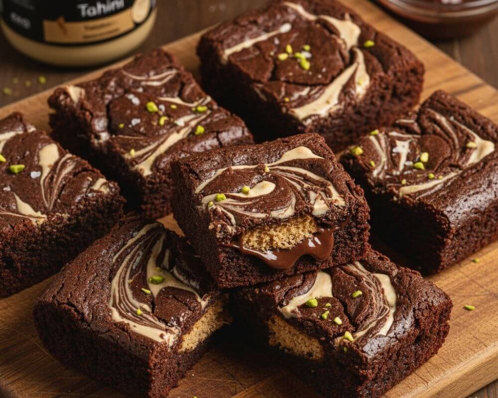 Serve: Dense, fudgy brownies with nutty tahini ribbons.